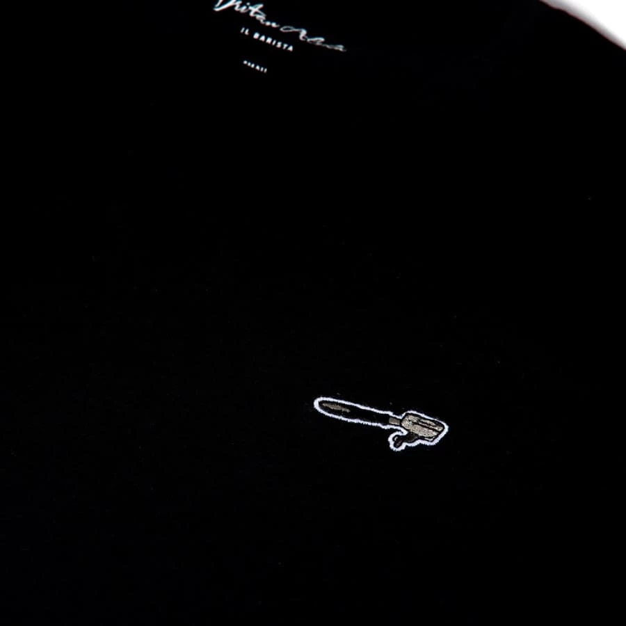 Cool shirt with the portafilter embroidery, shows your love for coffee. A must-have T-Shirt for every coffee lover.