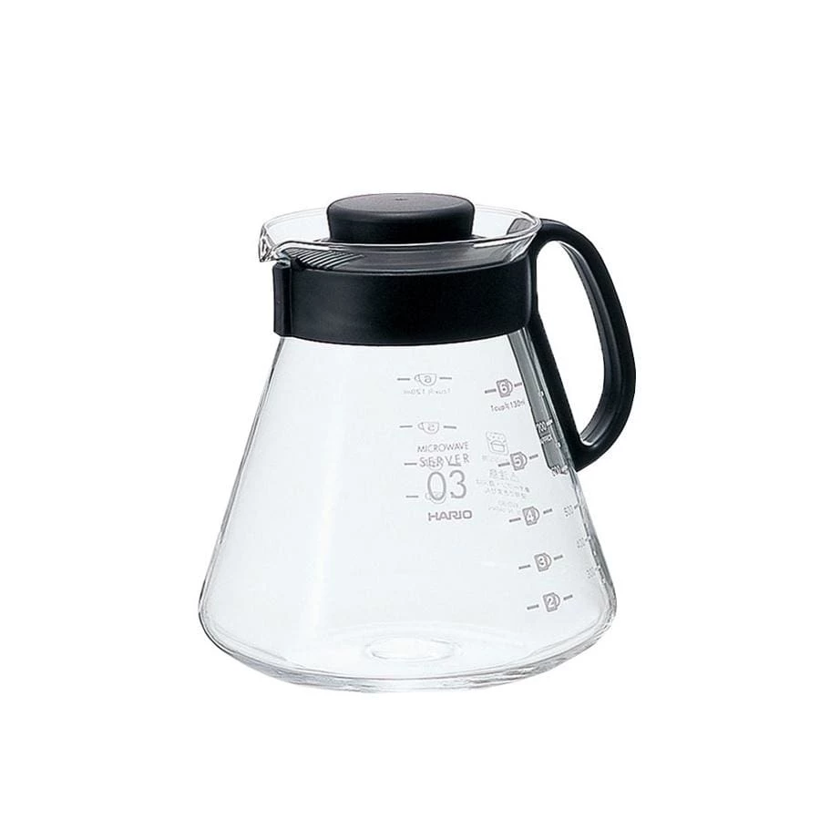 This coffee server comes with measurement lines showing the amount needed for each number of cups, making it easy to brew the right amount. Microwave safe with or without the lid. The V60 dripper can be kept on top of the server with the lid on for easy storage.